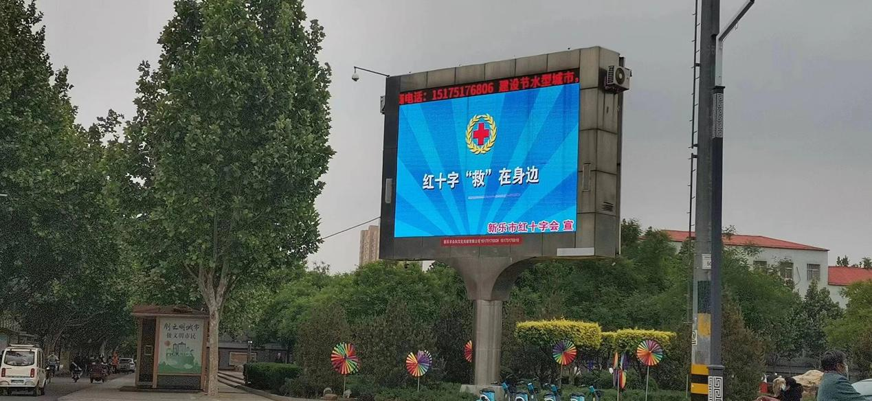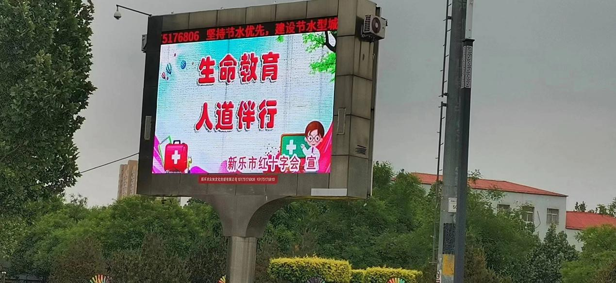 新乐市红十字会结合当下疫情防控形势 利用户外大屏做好5.8红十字博爱周宣传活动