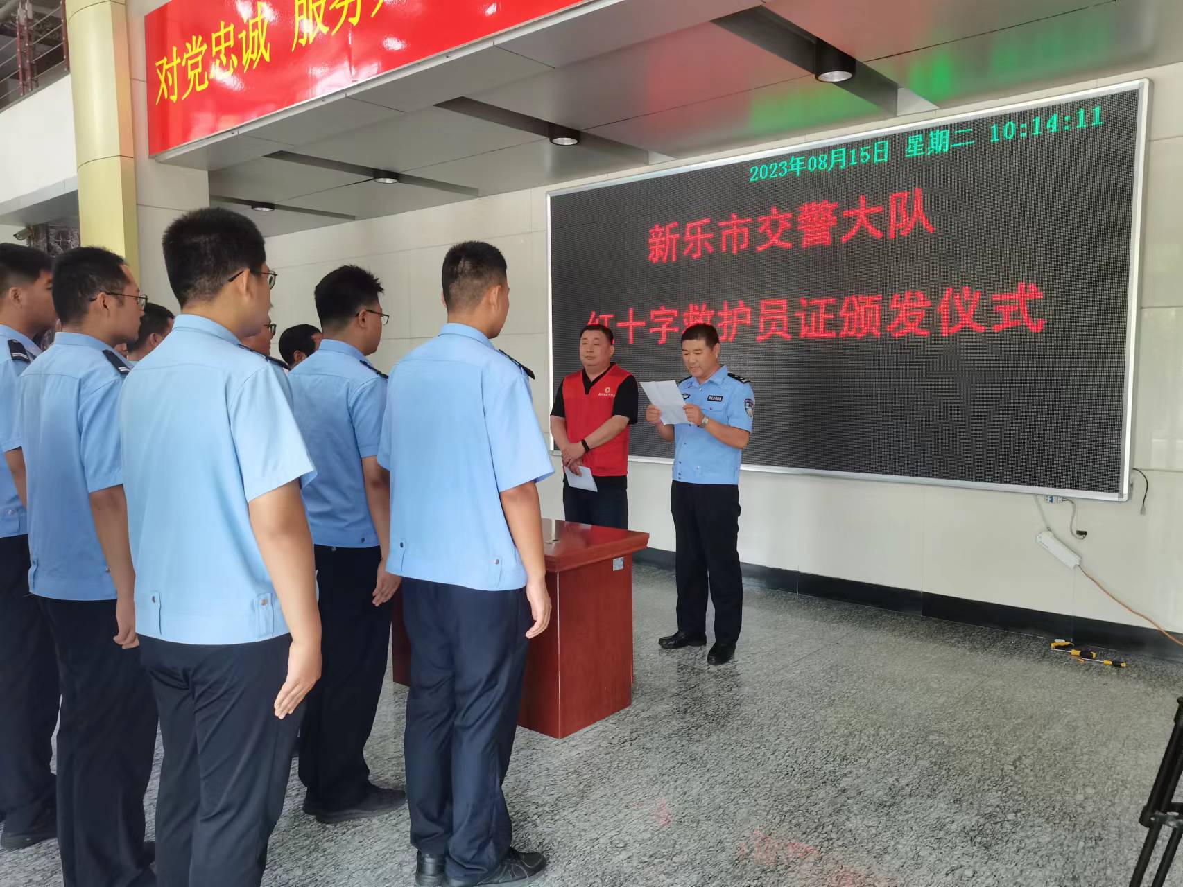日前,在新乐市红十字会组织的红十字急救员培训中,新乐市交警大队40余名干警系统学习了心肺复苏、AED的使用、海姆立克急救法、创伤包扎等应急救护知识并顺利通过了考核,并取得了相应的红十字技能证书。8月15日,新乐市交警大队举行红十字救护员证颁发仪式,新乐市红十字会常务副会长陈军、交警大队教导员李晓波出席仪式。
