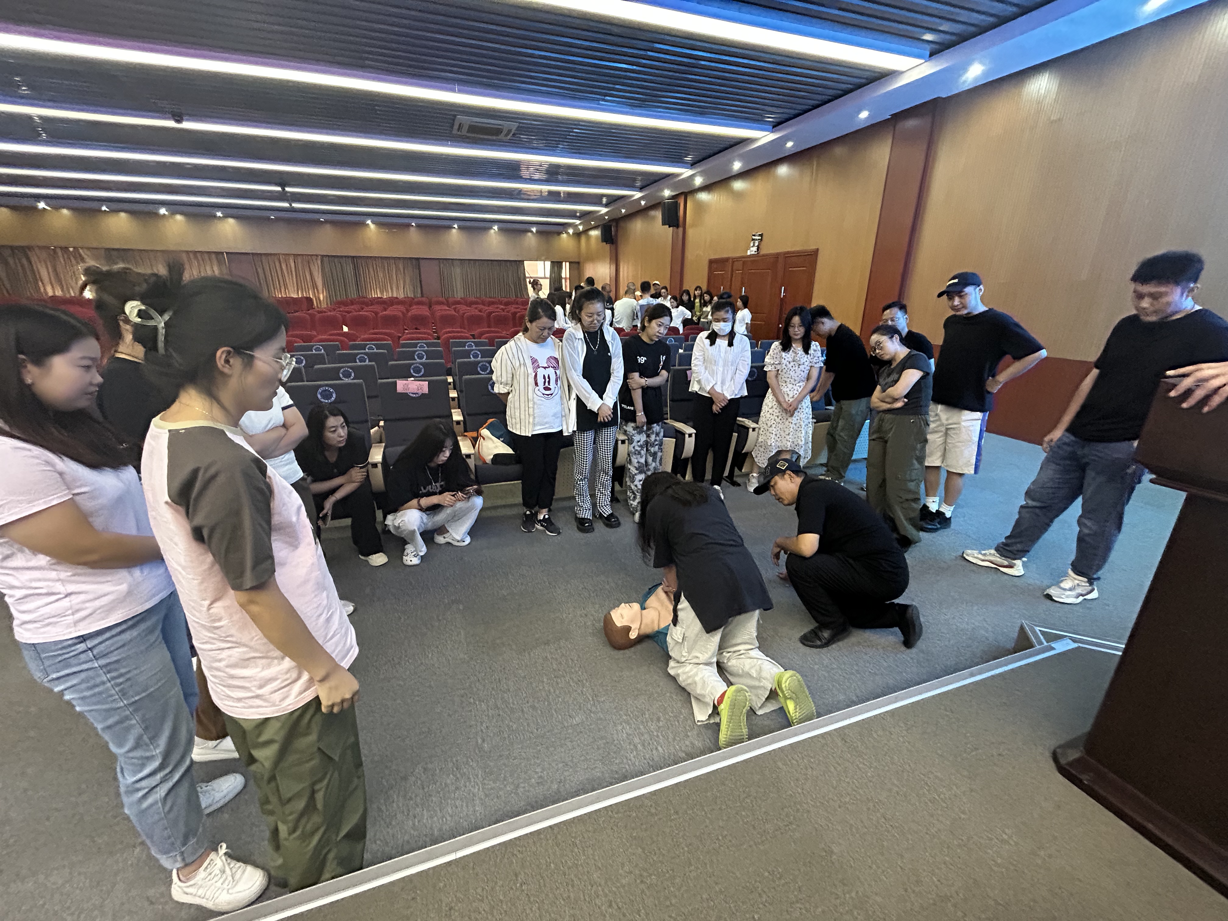 红十字师资利用模拟人进行演练示范,手把手传授急救技术要领,学员们认真听讲、用心做笔记、积极互动交流,课堂气氛高涨。