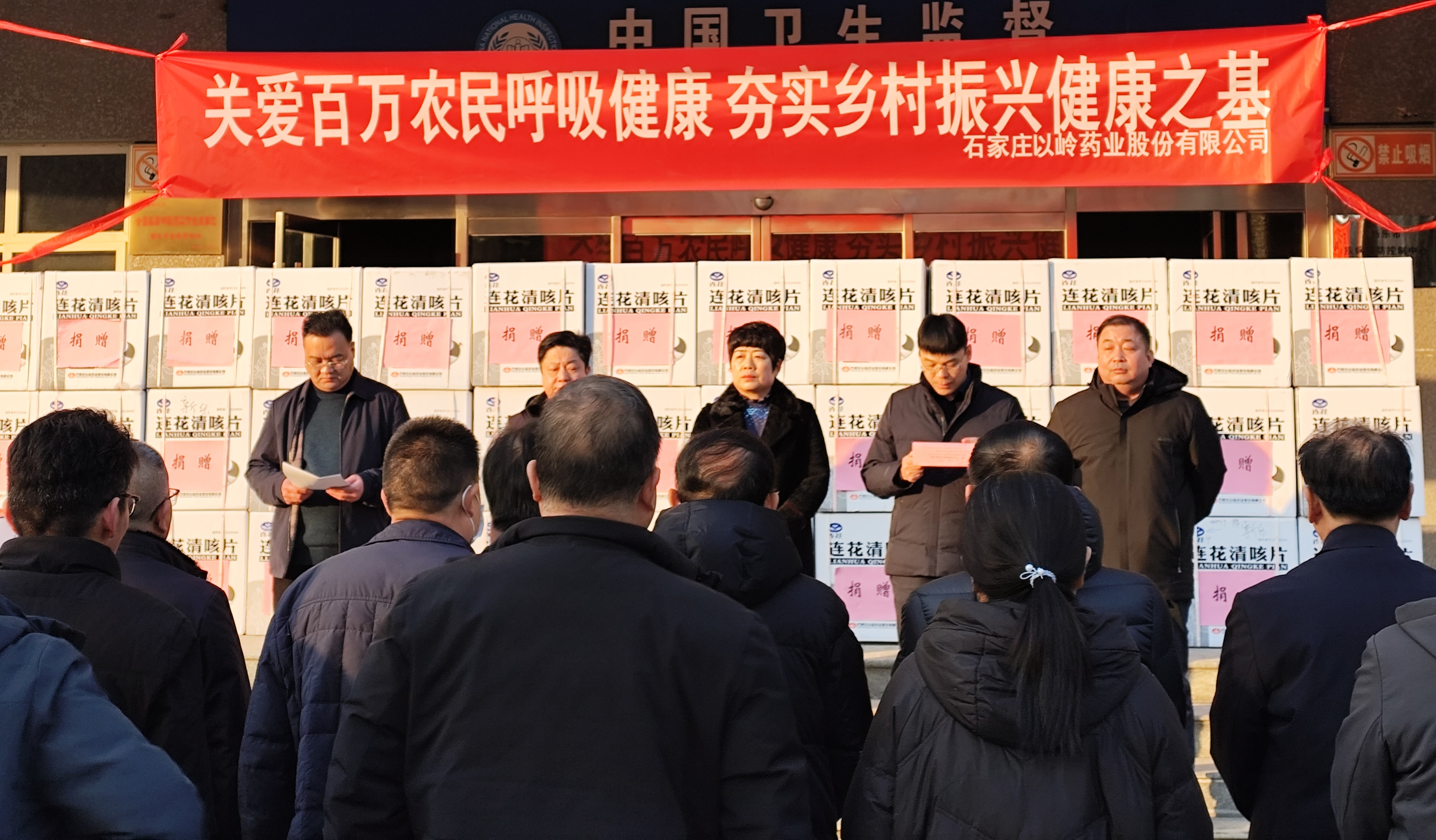 12月26日,石家庄以岭药业股份有限公司向新乐市捐赠价值67万元的连花清咳片,以“关爱百万农民呼吸健康,夯实乡村振兴健康之基”为主题的捐赠仪式在新乐市卫生健康局举行。