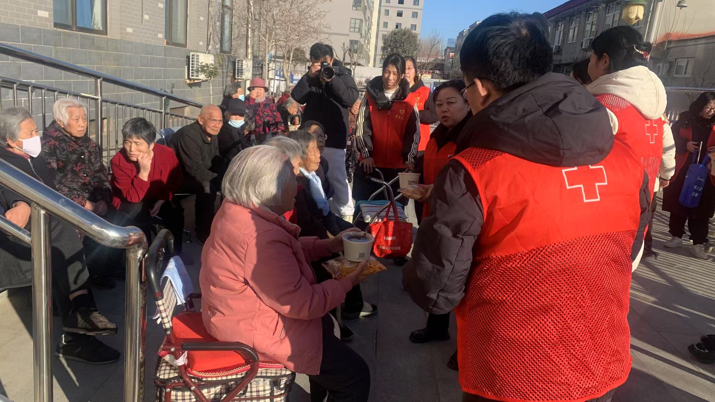 活动中,红十字会工作人员和义工协会的志愿者们带着满满的爱心与精心准备的腊八粥等慰问品来到老年公寓对90余名老人进行了慰问。在慰问过程中,红十字会工作人员向老人们介绍了红十字会的宗旨和使命,以及红十字会在关爱老年人等方面所做的工作。志愿者们与老人们亲切交谈,关心他们的生活起居和身体状况。有的志愿者还为老人们讲述有趣的故事和新闻,老人们个个笑逐颜开。