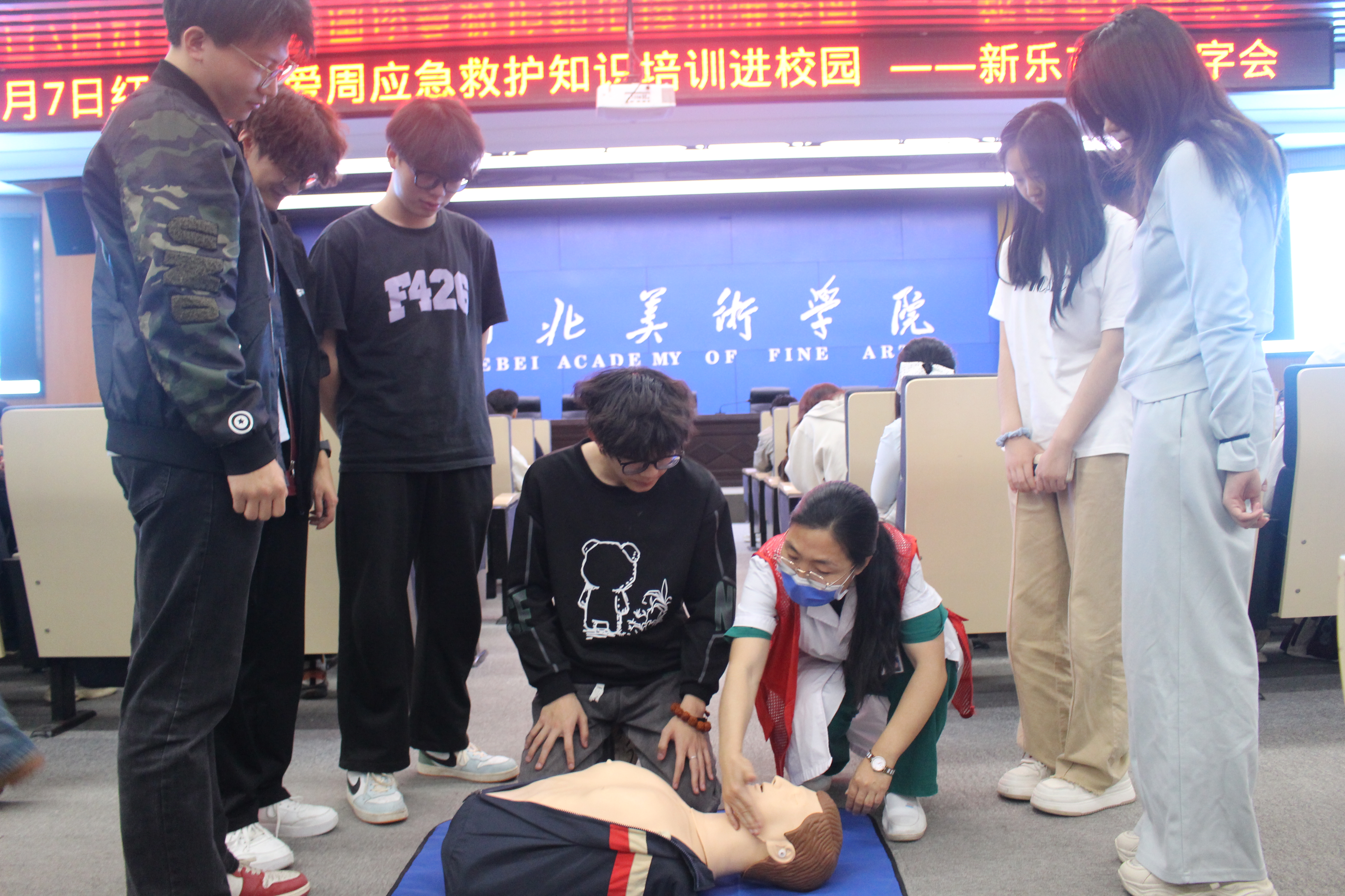 校园安全无小事,为进一步提高学校应急救护知识普及率,增强师生安全防范意识和自救互救能力,5月7日,新乐市红十字会走进河北美院开展应急救护知识普及活动,300余名师生参加心肺复苏(CPR+AED)专项培训。