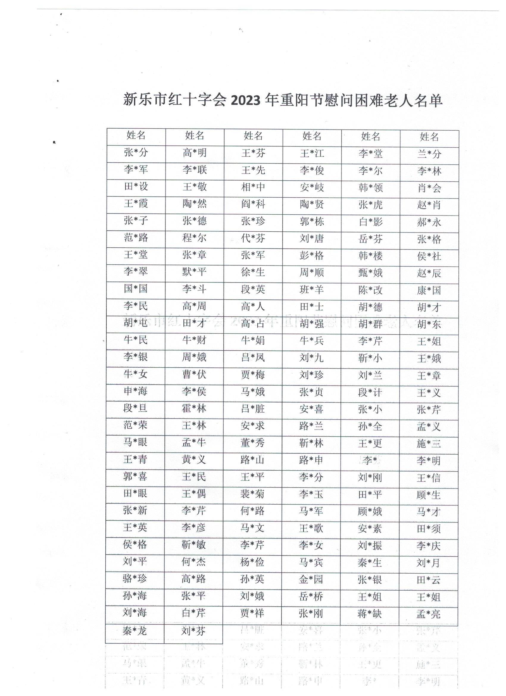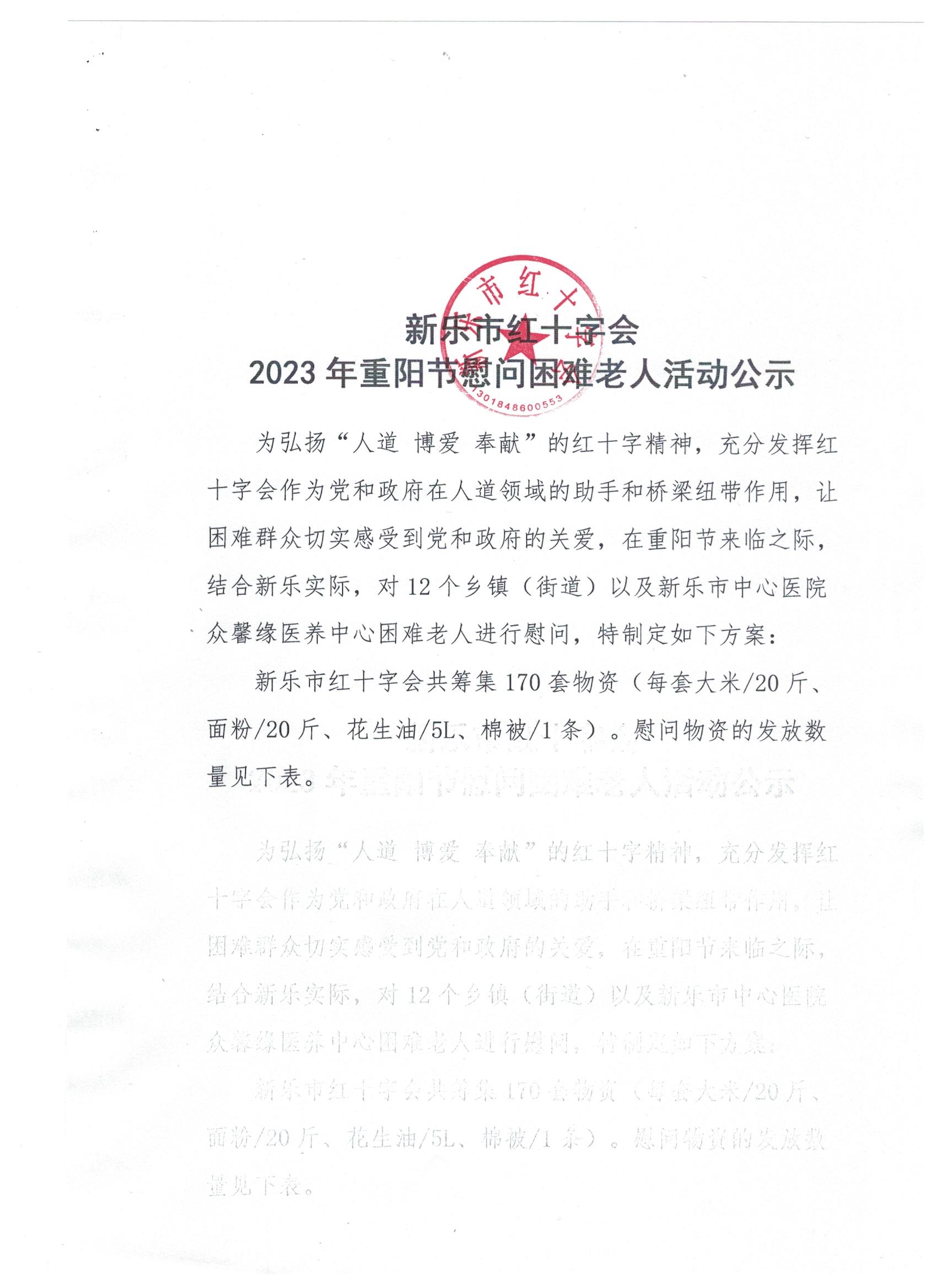 新乐市红十字会2023年重阳节慰问困难老人活动公示