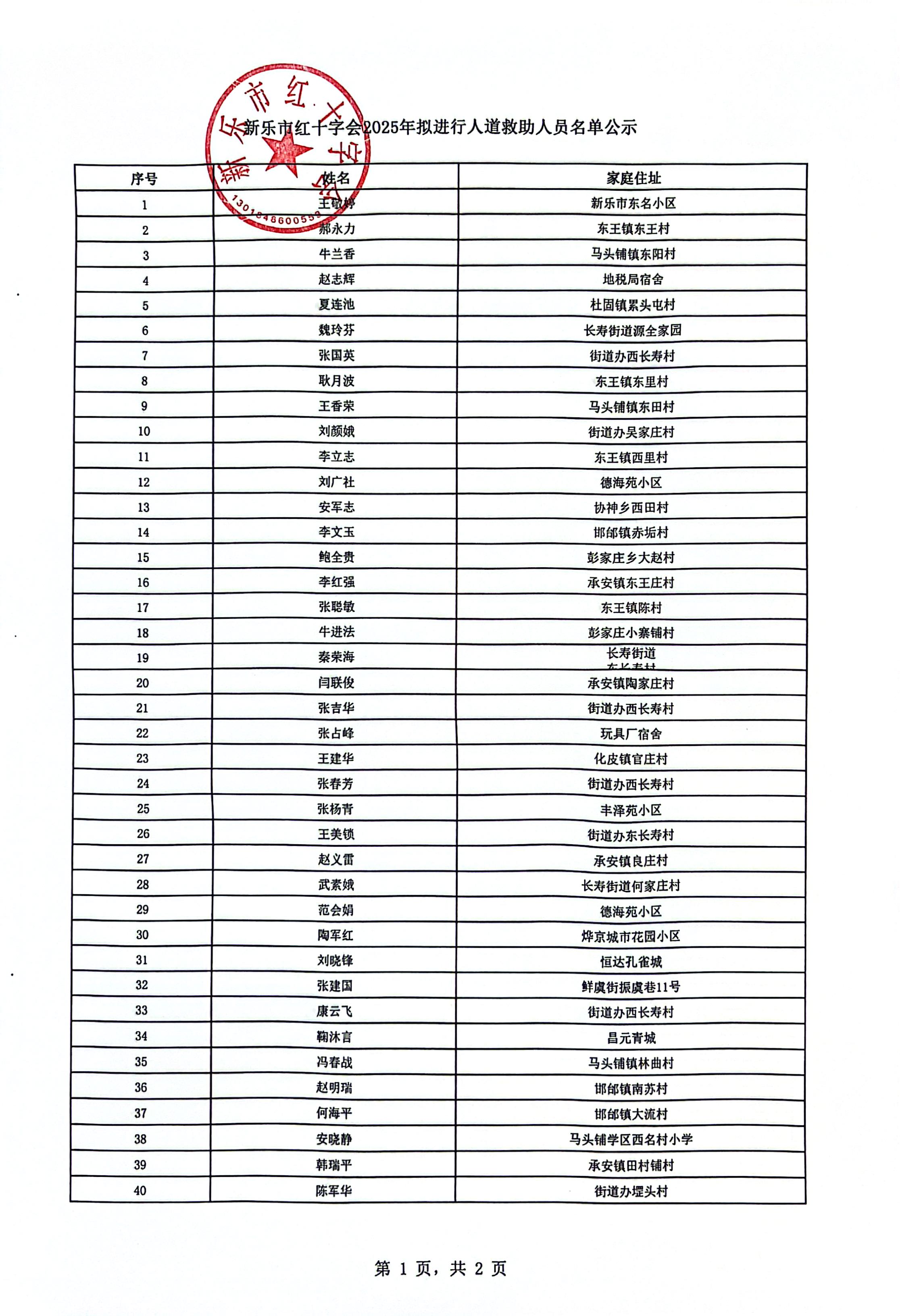 根据《新乐市红十字会人道救助管理办法(修改)》,经本人(亲属)申请,新乐市红十字会审核,拟对下表中81名困难群众进行人道救助。现将拟救助人员名单公示如下,请大家对名单中情况不实者积极反映。 公示无异议后,新乐市红十字会将对以下人员进行人道救助。